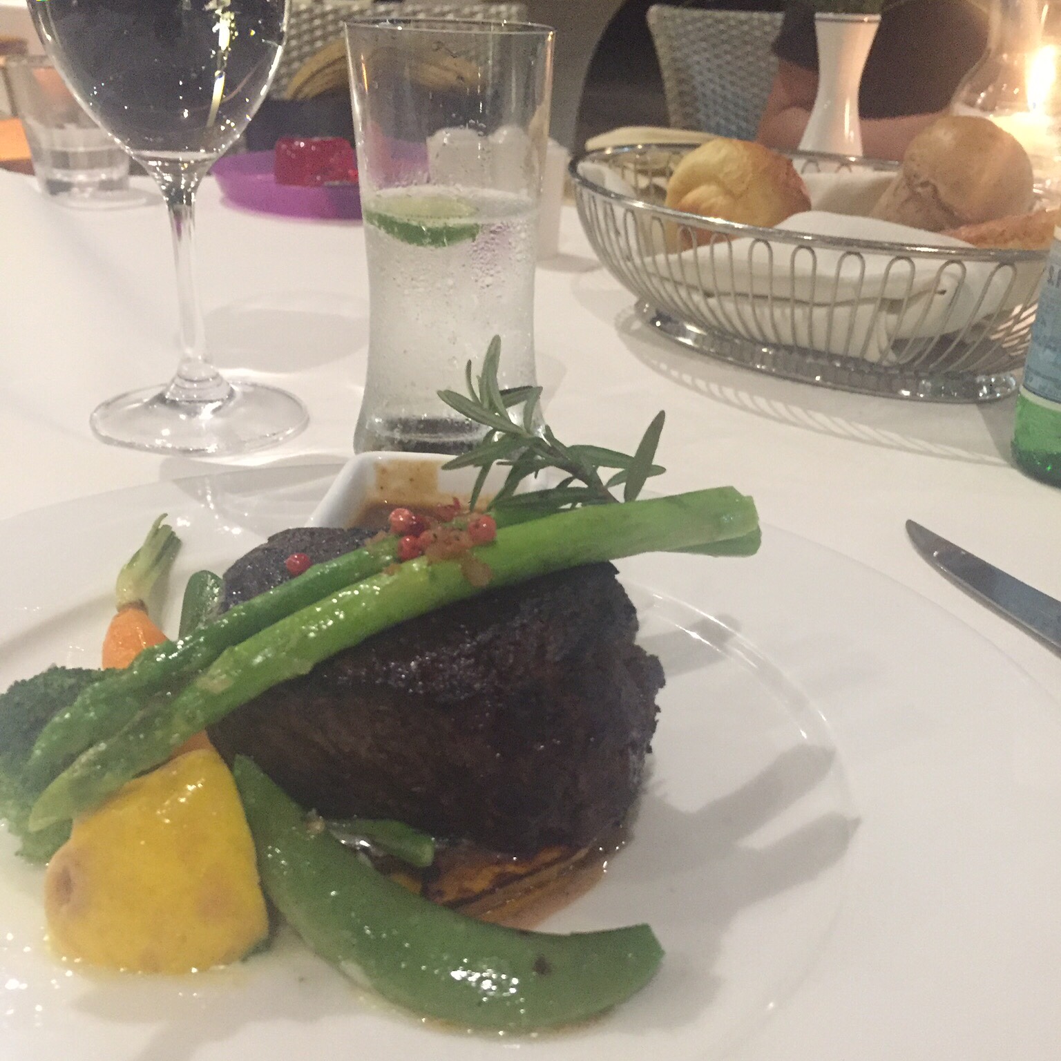 オープンエアの気持ちいレストランだった気がする。多分。おそらく。きっと。一応ドレスコードのようなものがあったらしいのだけれど、そんなことつゆ知らずオットが思いっきり短パンにビーサンで行ったら「まあいいよいいよ。楽しんで行ってよ!」みたいなことを言われていた。そして結局毎日同じようなカッコでレストランへ行っていた。1年前ですけど。