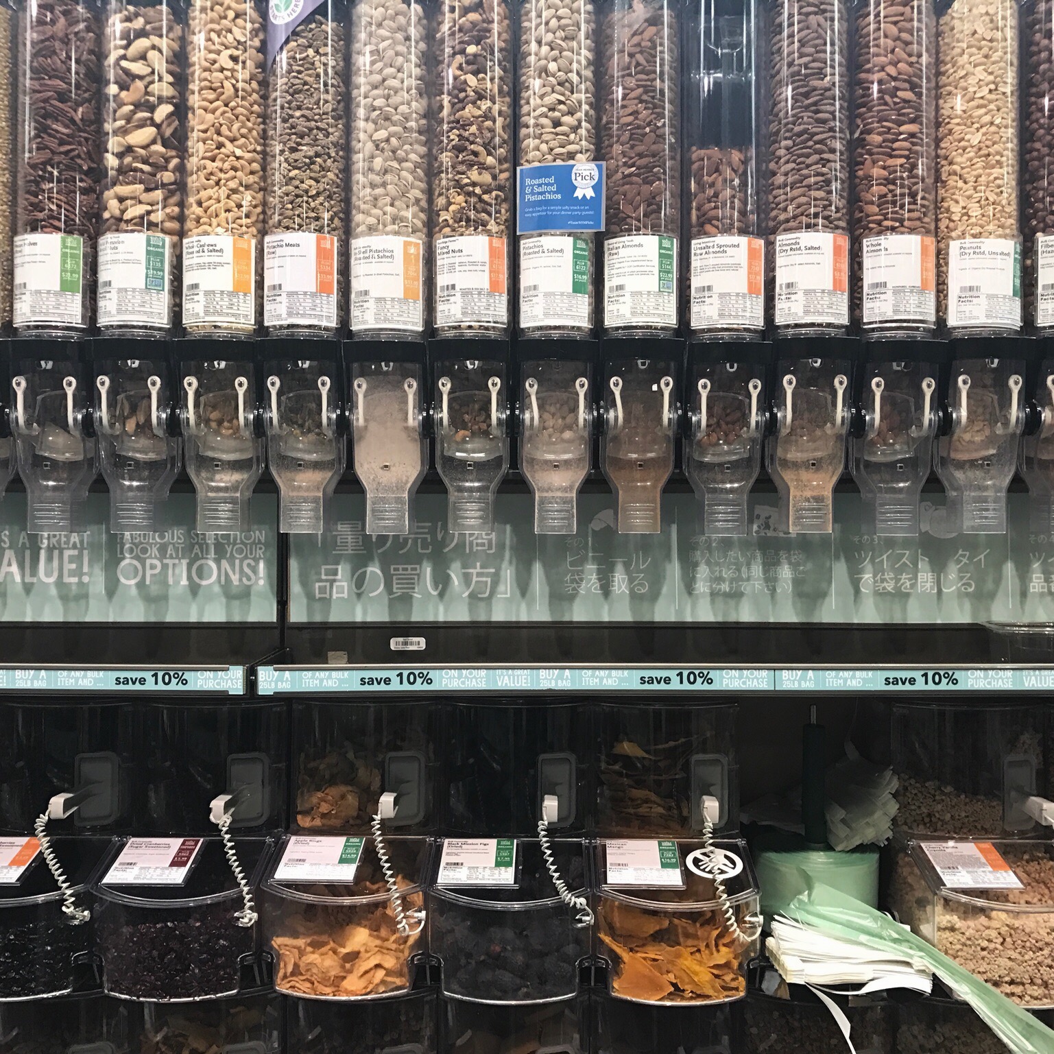 野菜の並びもかわいいーーーー。持って生まれたセンスなのかこういうのは。スーパーの買い物が楽しい、ワクワクする。ってそれほんとステキなことだと思う。わたしはお買い物好きだけれど、なかなか日用品の買い物はまでは楽しくなれない。それは「家事」の一つでしかないからかな。旅行先の買い出しが楽しいのは、それが非日常を過ごす旅行者だかなのか、それとも日用品の買い物も楽しくなるようなプロモーションをアメリカのスーパーがしているからなのか。何が言いたいかというとほんとうに日本にもホールフーズを・・・