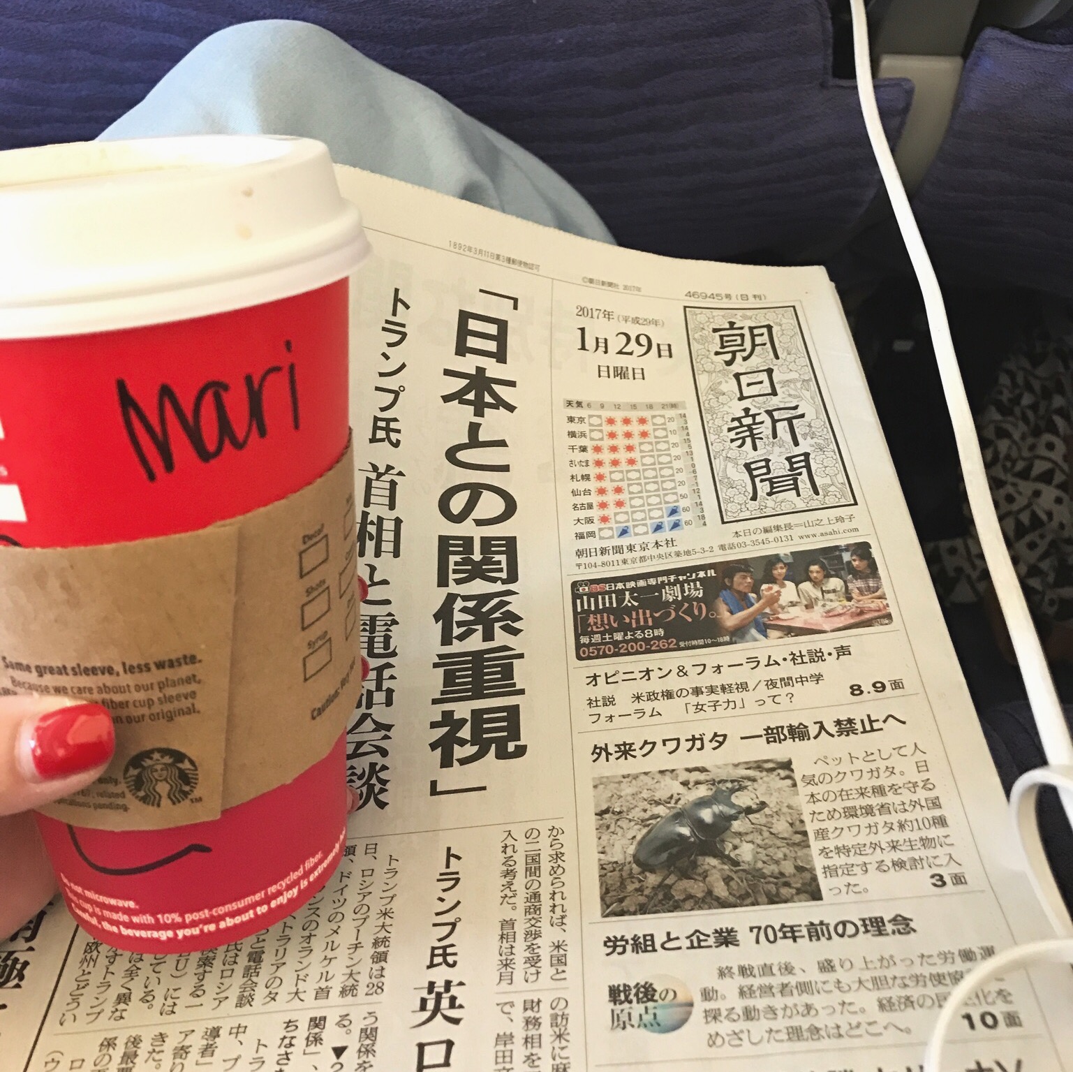 ホノルル空港のスタバでソイラテ買ったら名前がmariになりました。惜しい。
